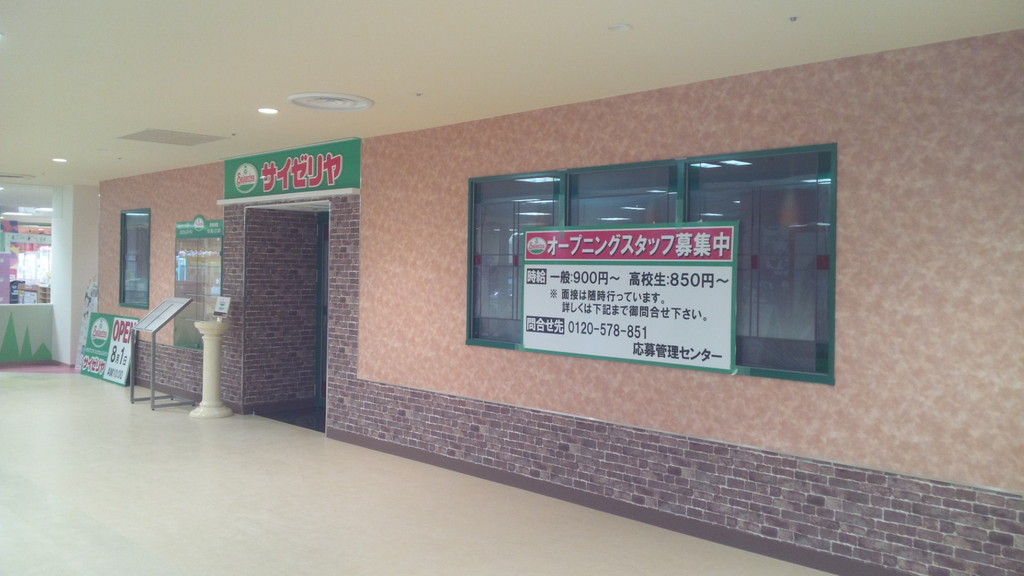 2019年07月25日 サイゼリヤ・ララスクエア四日市店 開店間近! -食事環境に新しい風- 各位好ここの記事でも書いた教室近くのアピタ(ララスクエア)に出来る、サイゼリヤの外観が姿を表しています当校近くで、あの500円ランチを食べれるようになるとはオープン直後は、3日(土),4日(日)に大四日市まつりがあるので、すごい混みようでしょうねブロクランキングに参加中です‘ぽちっと’押して応援くださればと思います ↓ 「我が街四日市」カテゴリの最新記事 タグ :##四日市##サイゼリヤ##桑名 < 前の記事次の記事 > コメント コメントフォーム 名前 コメント 評価する リセット リセット 顔 星 投稿する 情報を記憶