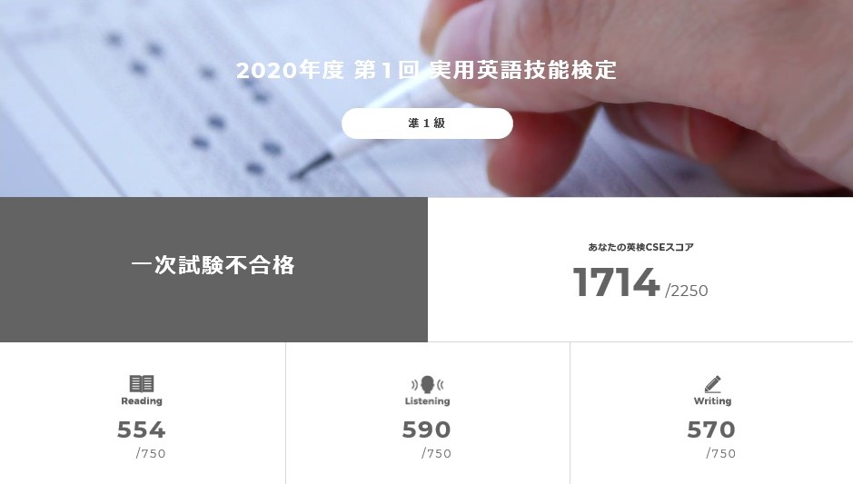 合格者平均と程遠いとしても、準1級のライティングで7割弱獲れるなんて、